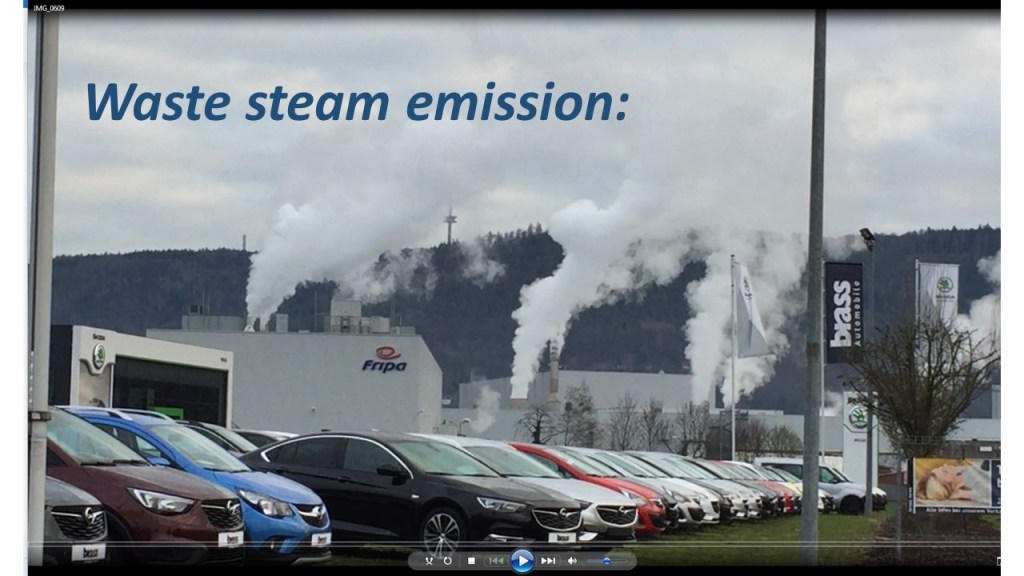 Der Abdampf einer Papierfabrik. Ein Kubikmeter Dampf pro Sekunde entspricht einer thermischen Leistung von 1,6 MW.